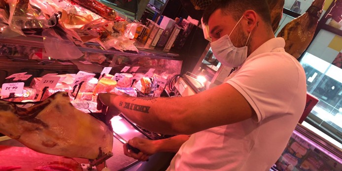 Jean-Cyprien Cassoulet est parti en stage en mars à Séville. Il est encore là-bas. Son stage de charcuterie au Mercado de Triana, un marché couvert de la capitale andalouse, est terminé mais il a été embauché par un autre commerçant sur le même marché, à sa grande satisfaction. « J’ai un contrat jusqu’en mars. J’aimerais rester le plus longtemps possible, et pourquoi pas tout le temps ! » Le jeune dolois apprécie particulièrement l’atmosphère. « Il y a le climat, ça change du Jura, on voit le soleil ! Cela dit, ça peut être très chaud. Cet été on est monté à 47 – 48. Mais j’apprécie surtout l’ambiance avec des gens chaleureux, gentils, ouverts. Les salaires sont moins élevés mais le coût de la vie aussi». Son maître de stage et son patron actuel sont à l’image de sa description. « Depuis le début, ça se passe super bien. Ils sont patients, expliquent d’où viennent les produits comment c’est fait. Ils sont curieux des méthodes de travail en France ».