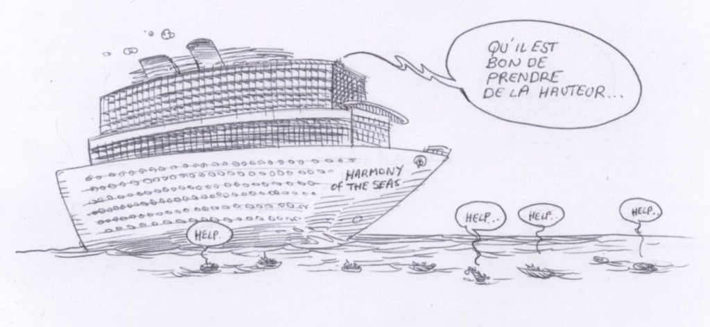 2 - Ironie des mers - la Royal caribbean cruise line s’apprête à lancer le plus gros paquebot jamais construit, 72 m de haut, construit par les ouvriers français du port de St-Nazaire. Le gros bateau s’appelle "Harmony of the Seas"...
