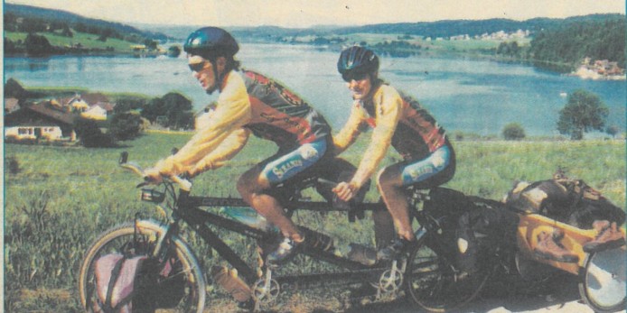 En ce moment, Hervé Faivre et Patrick Abraham doivent pédaler du côté de la Turquie. Peut-être à Istanbul, ou déjà en Anatolie. Au début du mois de septembre, ils étaient en tous cas à Craiova (Roumanie) après avoir parcouru 3200 km. Leur périple ne fait que commencer et pourtant ils sont déjà loin. Partis le 21 juillet dernier de Pontarlier, leur ville d'origine, direction Chapelle-des-Bois, les Balkans et l'Afrique, ils comptent revenir par l'Ukraine, l'Europe de l'Est et La-Chaux-de-Fonds dans trois ans, après avoir traversé cinq continents et deux océans, suivant un itinéraire planifié mais pas définitif : « Il est possible de prendre en compte les saisons mais difficile d'envisager les conditions politiques des pays à découvrir » disaient-ils avant leur départ. Déjà ils ont dû modifier leur trajet pour éviter Israël car le passage par ce pays interdit l'entrée dans certaines contrées proches. Ils auront quoi qu'il en soit traversé au bas mot une quarantaine de pays à la force des mollets, sur un tandem-VIT. Bref, l'aventure. « On a déjà un peu voyagé à vélo racionte Patrick Abraham. On avait essayé le tandem pour aller en cinq jours aux Jeux olympiques de Barcelone et on avait trouvé ça génial. Pour ce nouveau défi, on a commencé à s'organiser il y a un an et demi. On s'est dit que si on voulait faire ce tour du monde, c'était maintenant ».