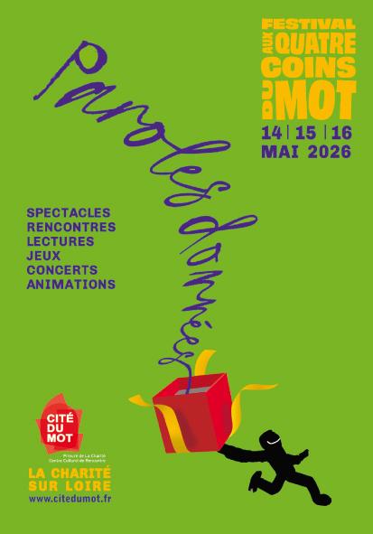 Fête des mots en 3 jours de spectacles (Les Fouteurs de Joie, Marcel Bozonnet, Vincent Rocca + Yannick Jaulin), lectures, animations, musique, rencontres, jeux... Thème 2026 : paroles données. Infos ici.
